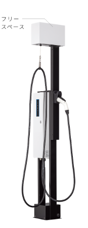 ケーブルマネジメント 急速充電器は大電流を流す為、ケーブルが太く重たくなっております。充電ケーブル使用後の放置による歩行者の転倒や車両がケーブルを踏むことによっての断線故障など防げます。